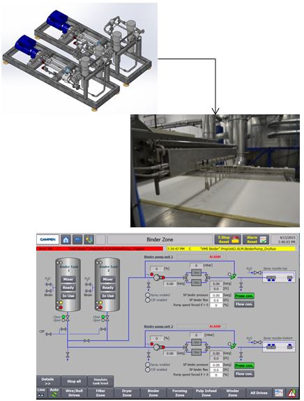 - In case of a short line stop, the pump will automatically run at minimum capacity in a bypass loop to prevent clogging of binder inside the pump