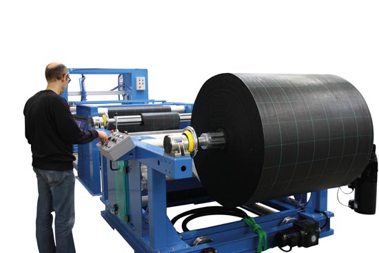 Splicing of the fabric can be made by means of adhesive tape, sewing or heat splicing, and for in-line operation it can be combined with an accumulator.